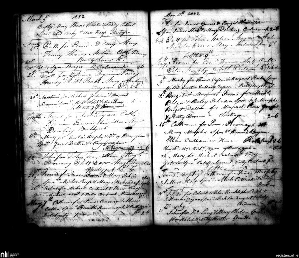 Inistioge; County of Kilkenny; Diocese of Ossory. Baptisms, Mar. 1832 to June 1832
