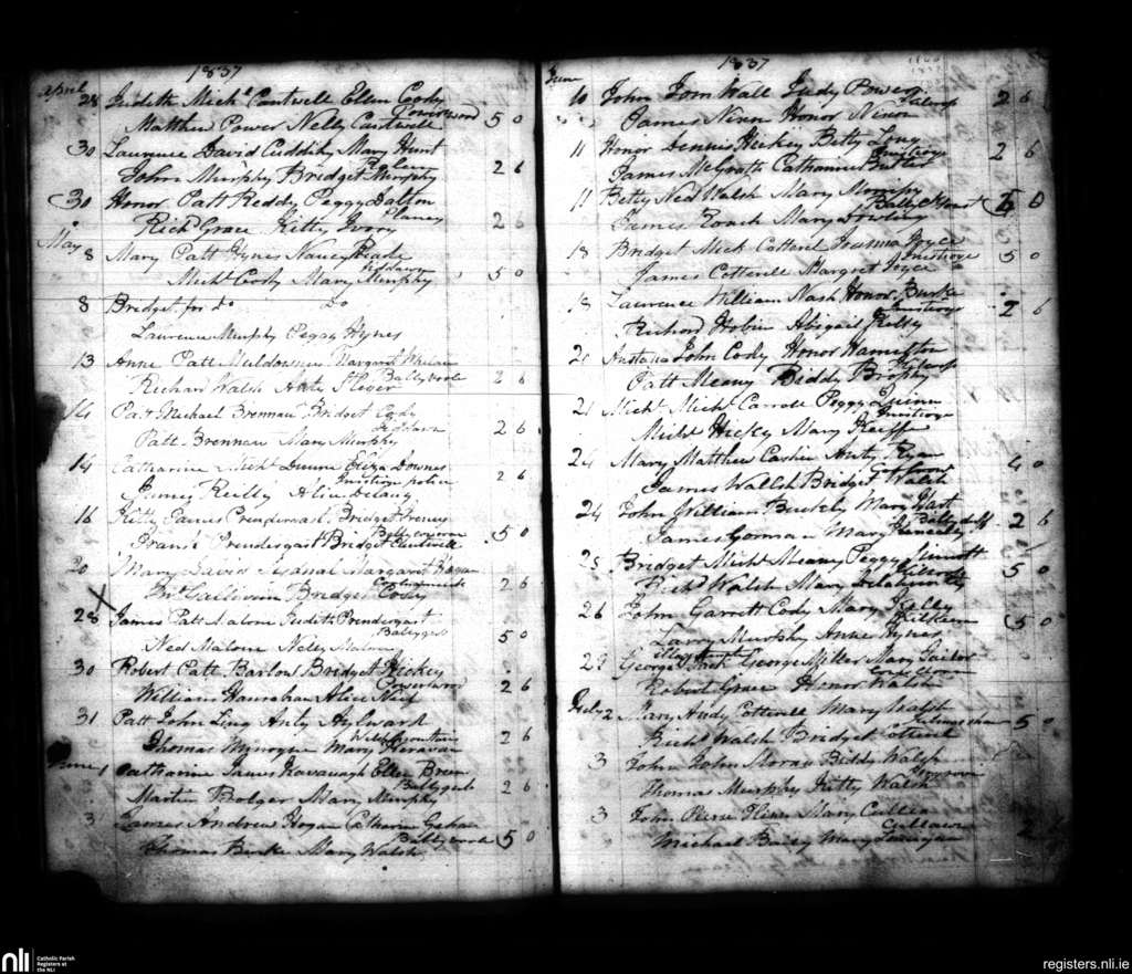 Inistioge; County of Kilkenny; Diocese of Ossory. Baptisms, Apr. 1837 to July 1837