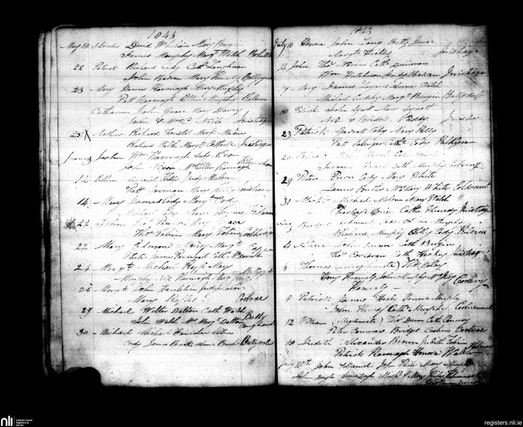 Inistioge; County of Kilkenny; Diocese of Ossory. Baptisms, May 1843 to Aug. 1843