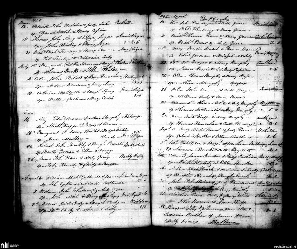 Inistioge; County of Kilkenny; Diocese of Ossory. Baptisms, June 1845 to Sep. 1845