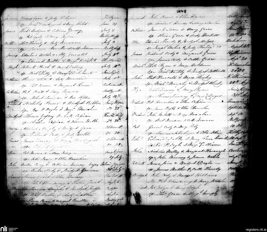 Inistioge; County of Kilkenny; Diocese of Ossory. Baptisms, June 1848 to Oct. 1848