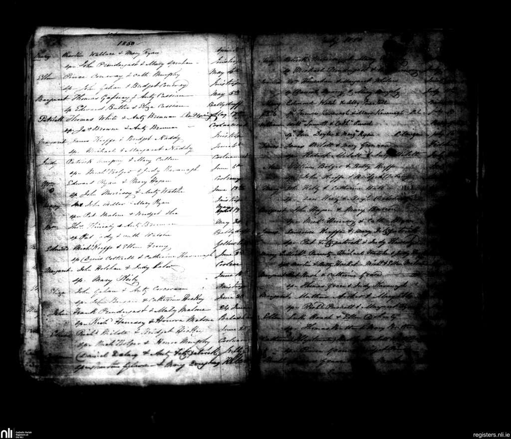 Inistioge; County of Kilkenny; Diocese of Ossory. Baptisms, Apr. 1850 to July 1850