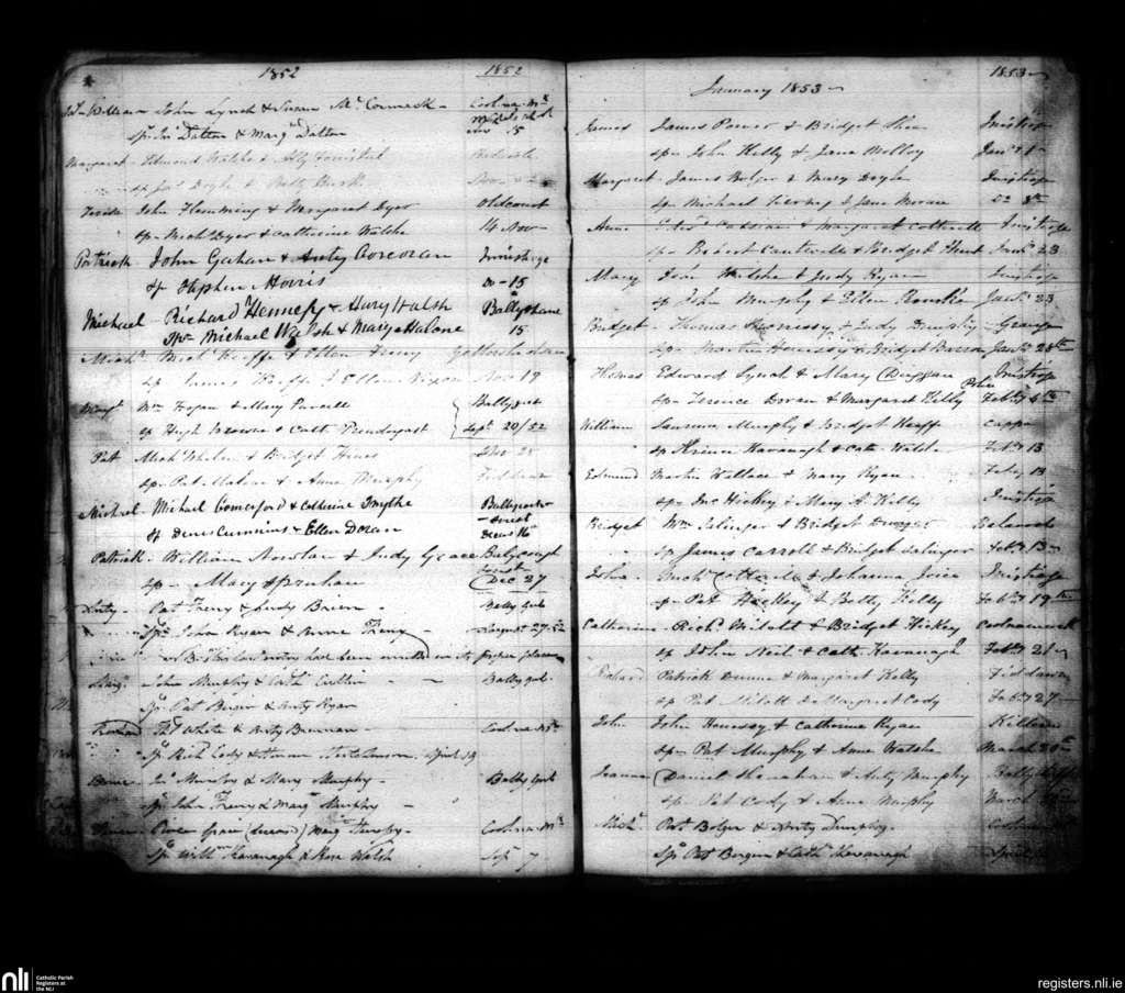 Inistioge; County of Kilkenny; Diocese of Ossory. Baptisms, Sep. 1852 to Mar. 1853