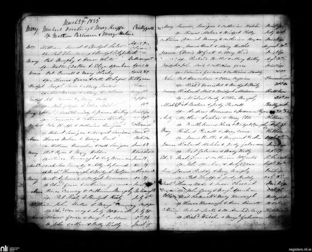 Inistioge; County of Kilkenny; Diocese of Ossory. Baptisms, Apr. 1853 to Nov. 1853