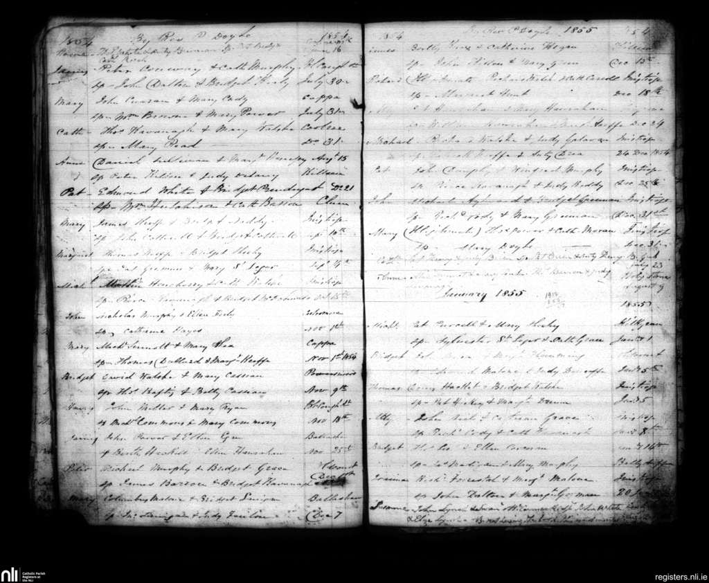 Inistioge; County of Kilkenny; Diocese of Ossory. Baptisms, June 1854 to Jan. 1855