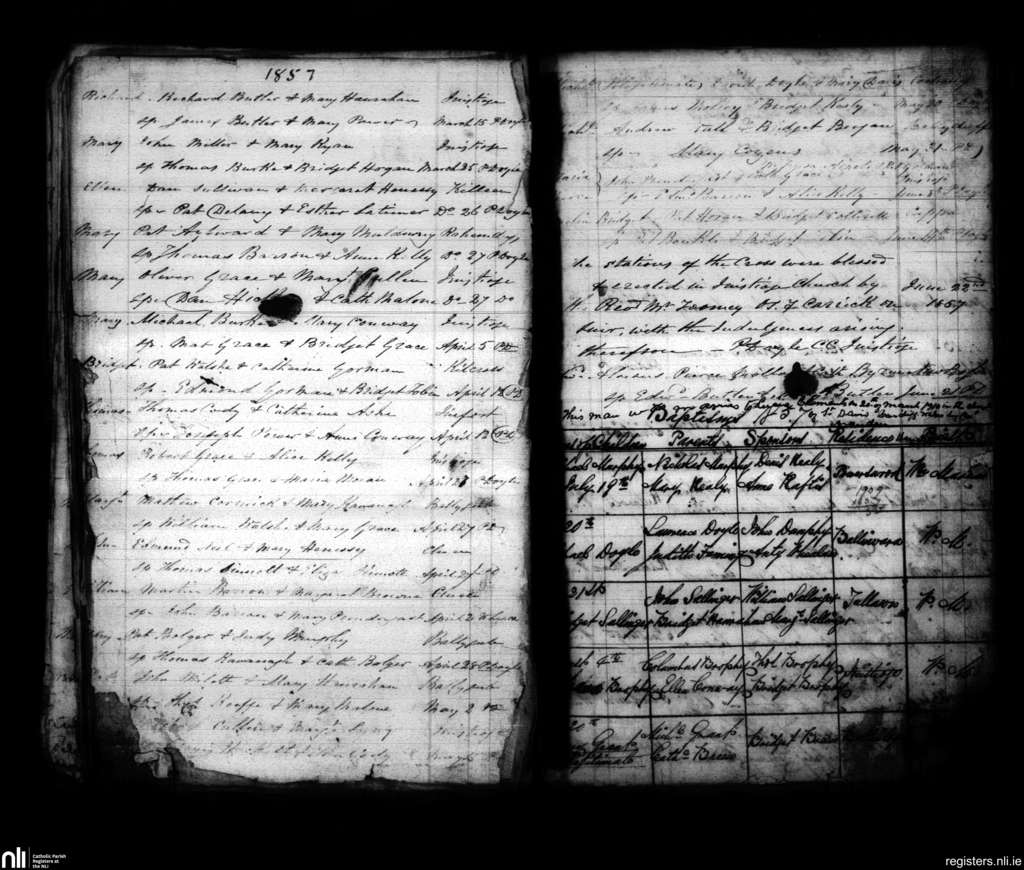 Inistioge; County of Kilkenny; Diocese of Ossory. Baptisms, Mar. 1857 to Aug. 1857