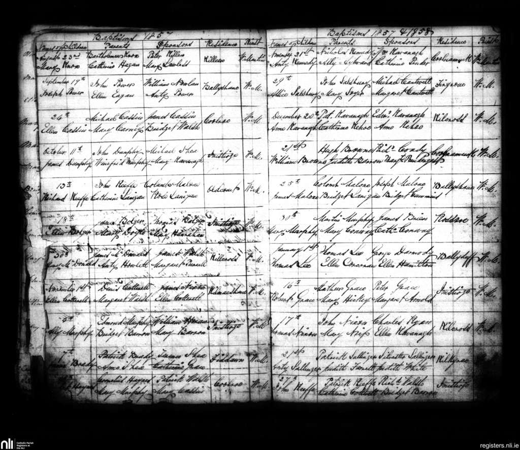 Inistioge; County of Kilkenny; Diocese of Ossory. Baptisms, Aug. 1857 to Jan. 1858