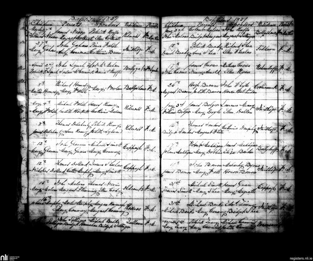 Inistioge; County of Kilkenny; Diocese of Ossory. Baptisms, Mar. 1859 to Aug. 1859