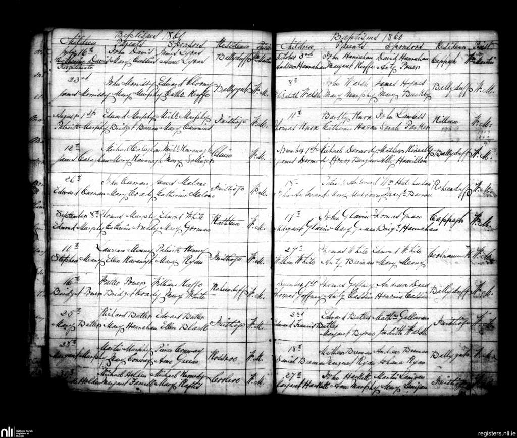 Inistioge; County of Kilkenny; Diocese of Ossory. Baptisms, July 1860 to Dec. 1860