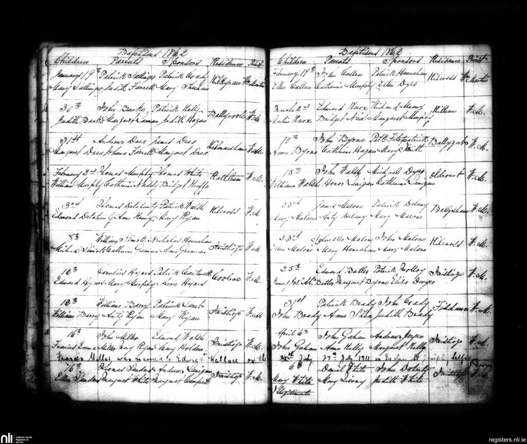 Inistioge; County of Kilkenny; Diocese of Ossory. Baptisms, Jan. 1862 to Apr. 1862