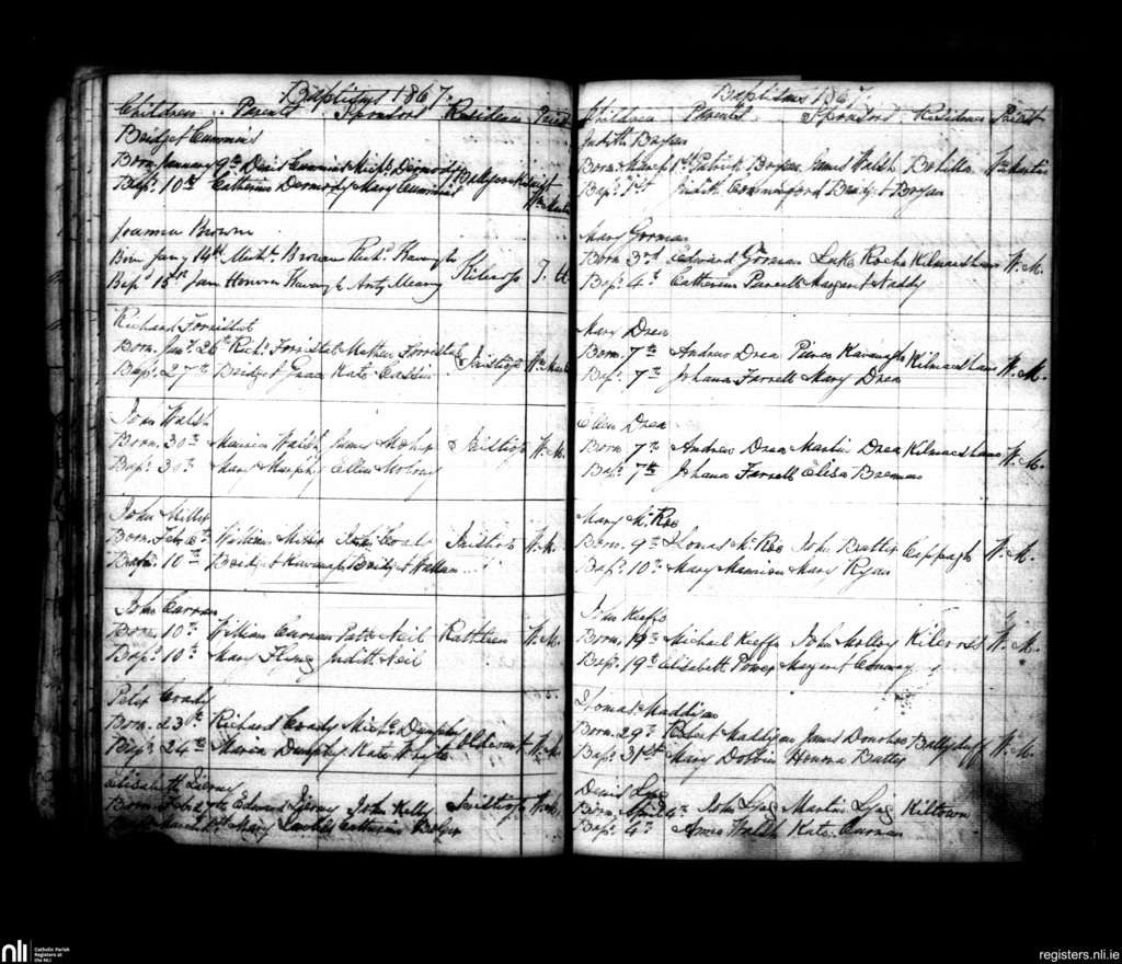 Inistioge; County of Kilkenny; Diocese of Ossory. Baptisms, Jan. 1867 to Apr. 1867