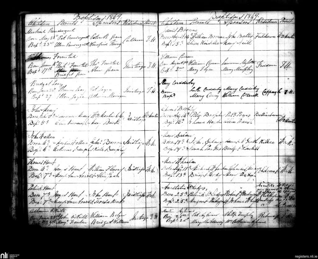 Inistioge; County of Kilkenny; Diocese of Ossory. Baptisms, May 1869 to Sep. 1869