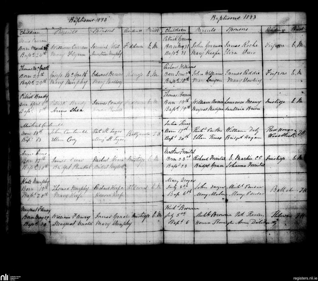 Inistioge; County of Kilkenny; Diocese of Ossory. Baptisms, Mar. 1873 to July 1873