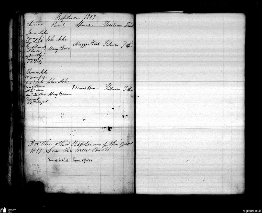Inistioge; County of Kilkenny; Diocese of Ossory. Baptisms, July 1877 to Aug. 1877