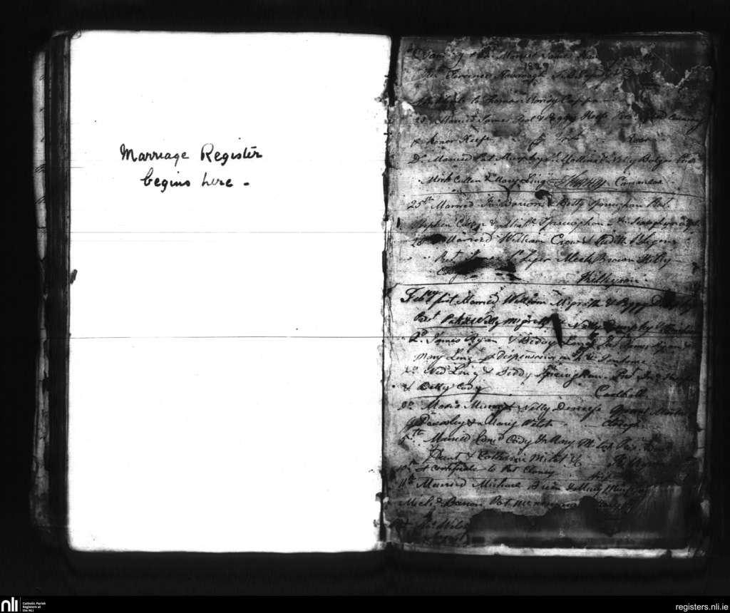 Inistioge; County of Kilkenny; Diocese of Ossory. Marriages, Jan. 1827 to Feb. 1827