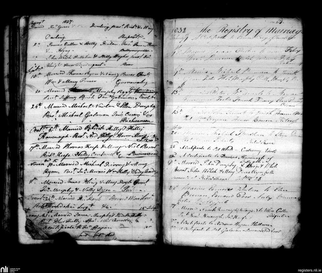 Inistioge; County of Kilkenny; Diocese of Ossory. Marriages, Aug. 1827 to Feb. 1832