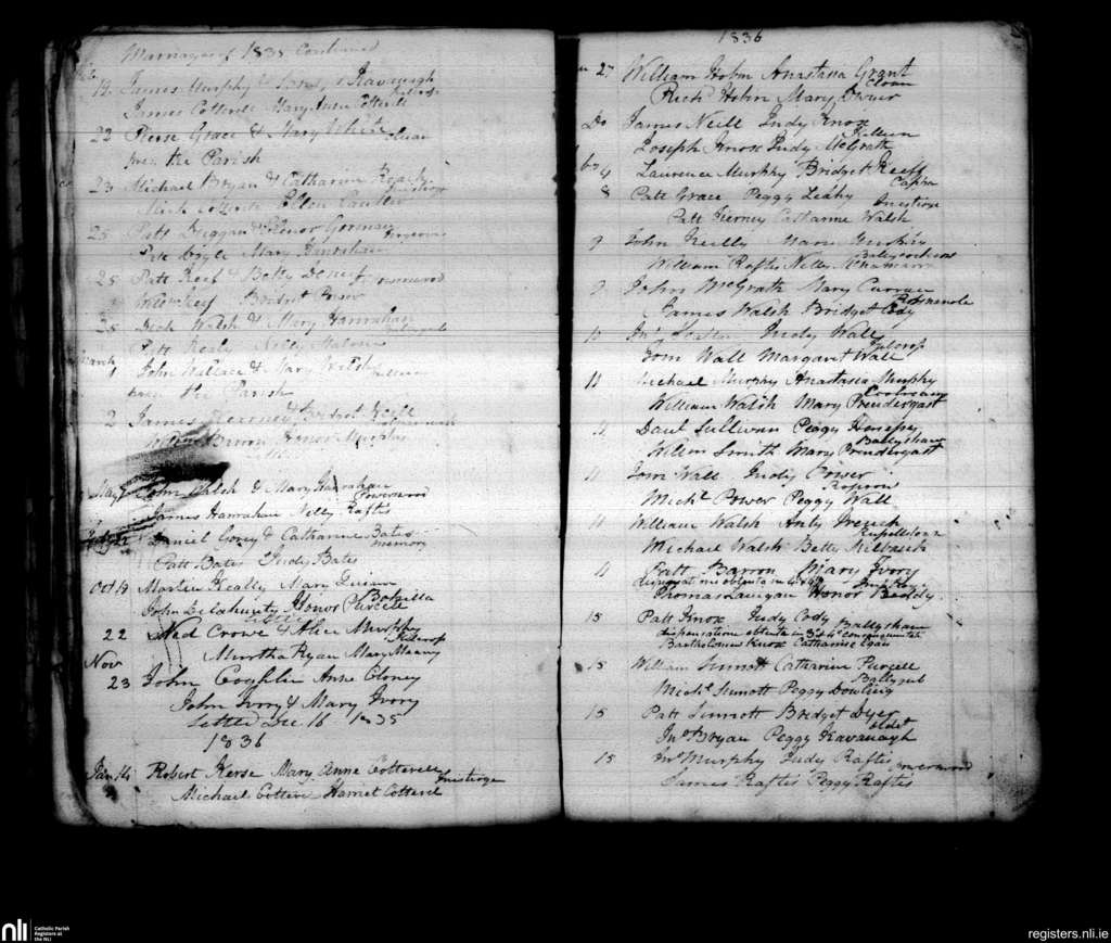 Inistioge; County of Kilkenny; Diocese of Ossory. Marriages, Feb. 1835 to Feb. 1836