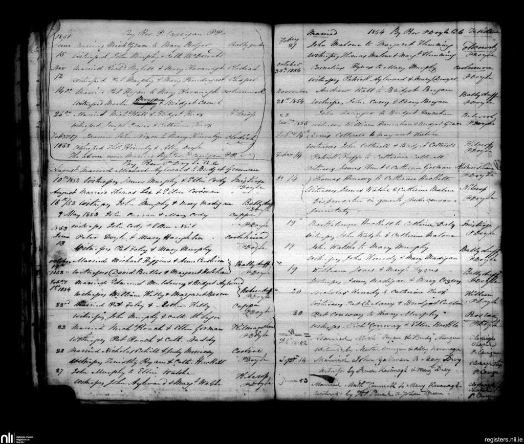 Inistioge; County of Kilkenny; Diocese of Ossory. Marriages, June 1851 to Feb. 1855