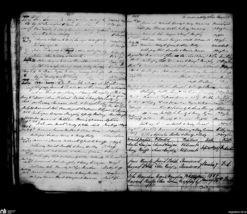Inistioge; County of Kilkenny; Diocese of Ossory. Marriages, Feb. 1854 to Jan. 1858