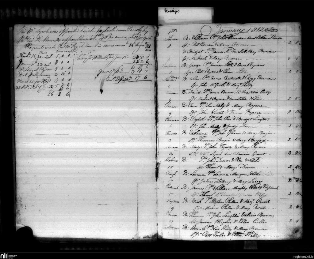Castlecomer; County of Kilkenny; Diocese of Ossory. Baptisms, Jan. 1812