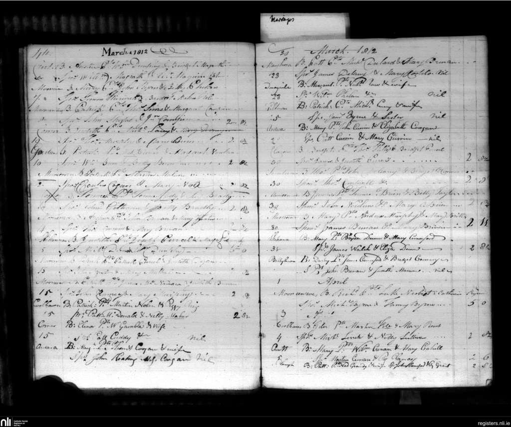 Castlecomer; County of Kilkenny; Diocese of Ossory. Baptisms, Mar. 1812 to Apr. 1812