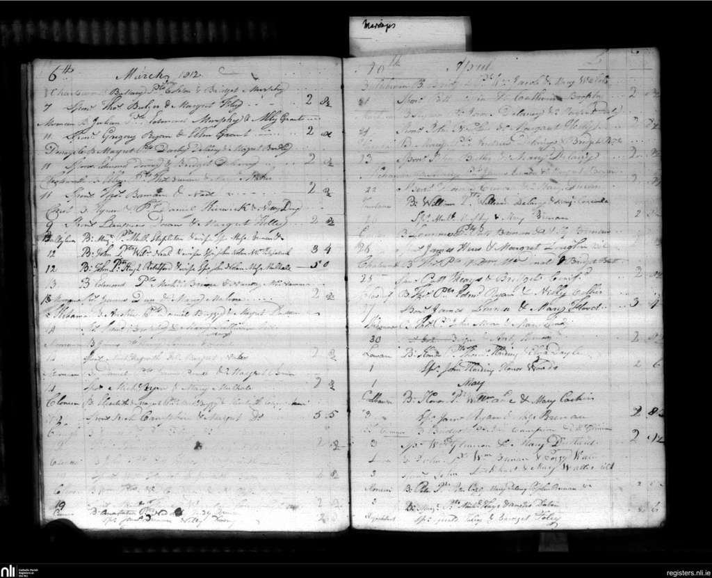 Castlecomer; County of Kilkenny; Diocese of Ossory. Baptisms, Mar. 1812 to May 1812
