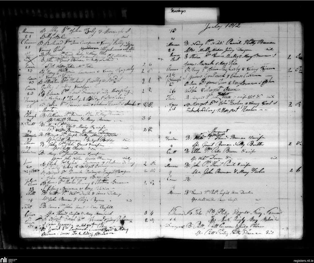 Castlecomer; County of Kilkenny; Diocese of Ossory. Baptisms, June 1812 to Aug. 1812