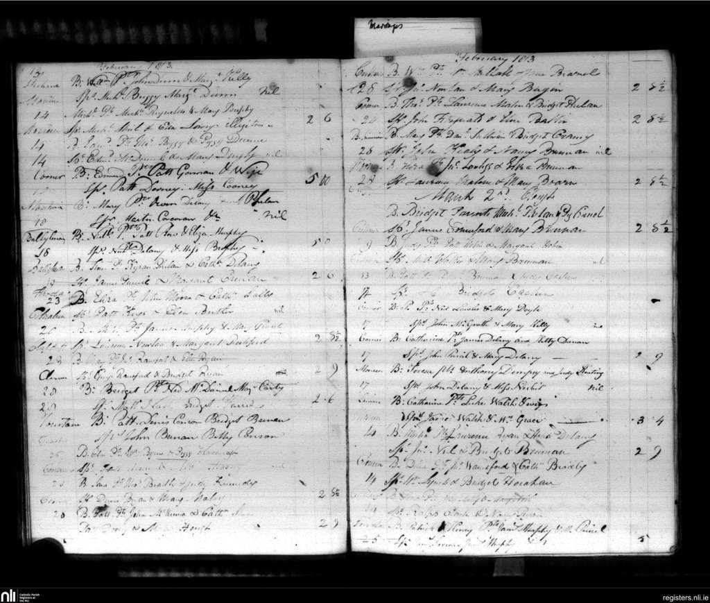 Castlecomer; County of Kilkenny; Diocese of Ossory. Baptisms, Feb. 1813 to Mar. 1813
