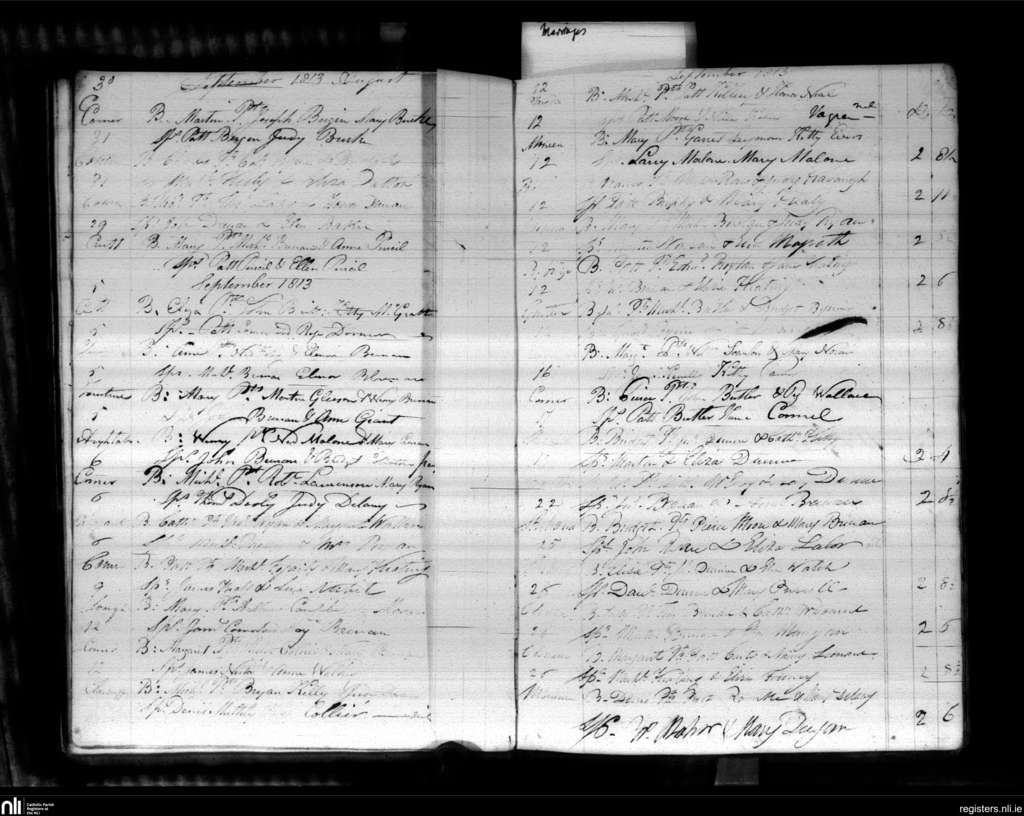 Castlecomer; County of Kilkenny; Diocese of Ossory. Baptisms, Aug. 1813 to Sep. 1813