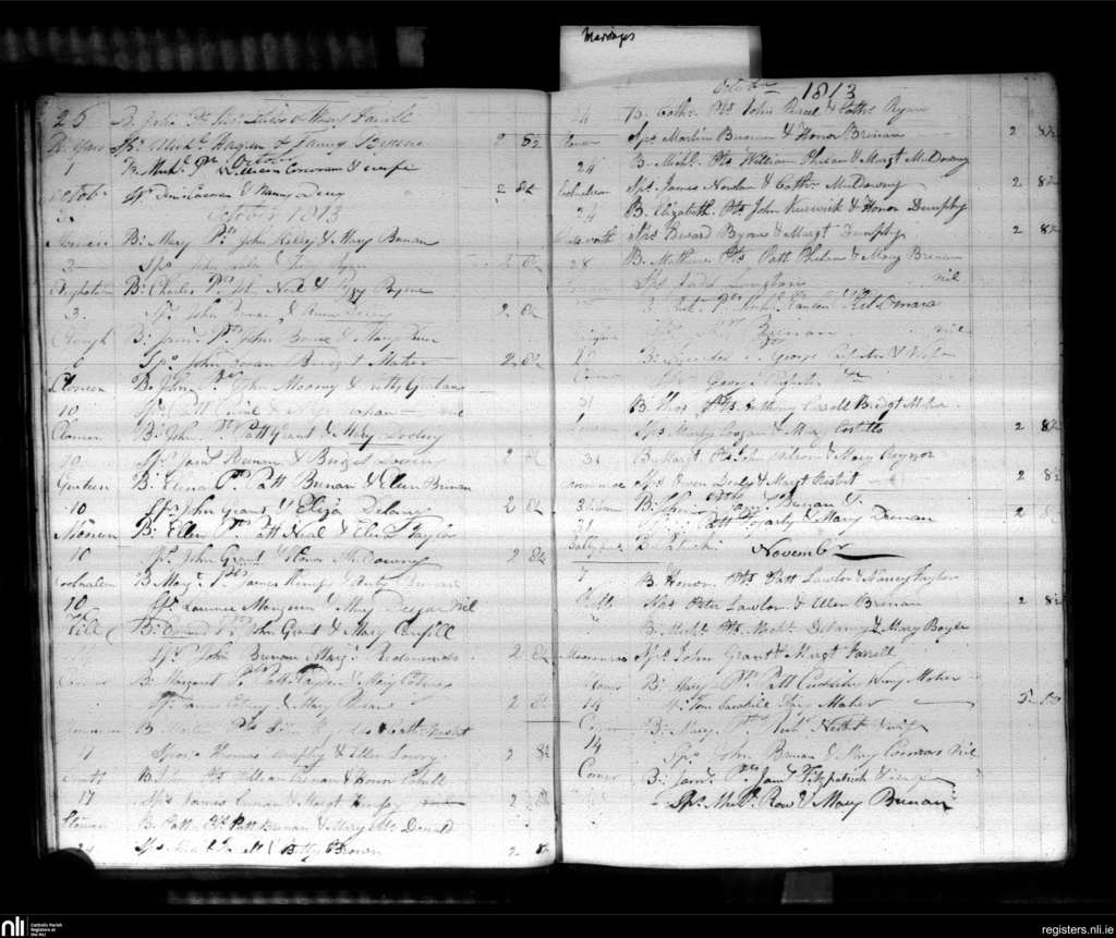 Castlecomer; County of Kilkenny; Diocese of Ossory. Baptisms, Sep. 1813 to Nov. 1813