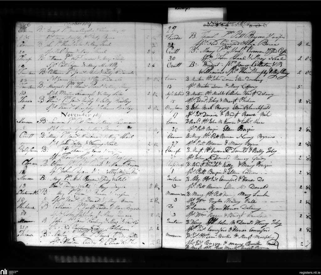 Castlecomer; County of Kilkenny; Diocese of Ossory. Baptisms, Oct. 1814 to Nov. 1814