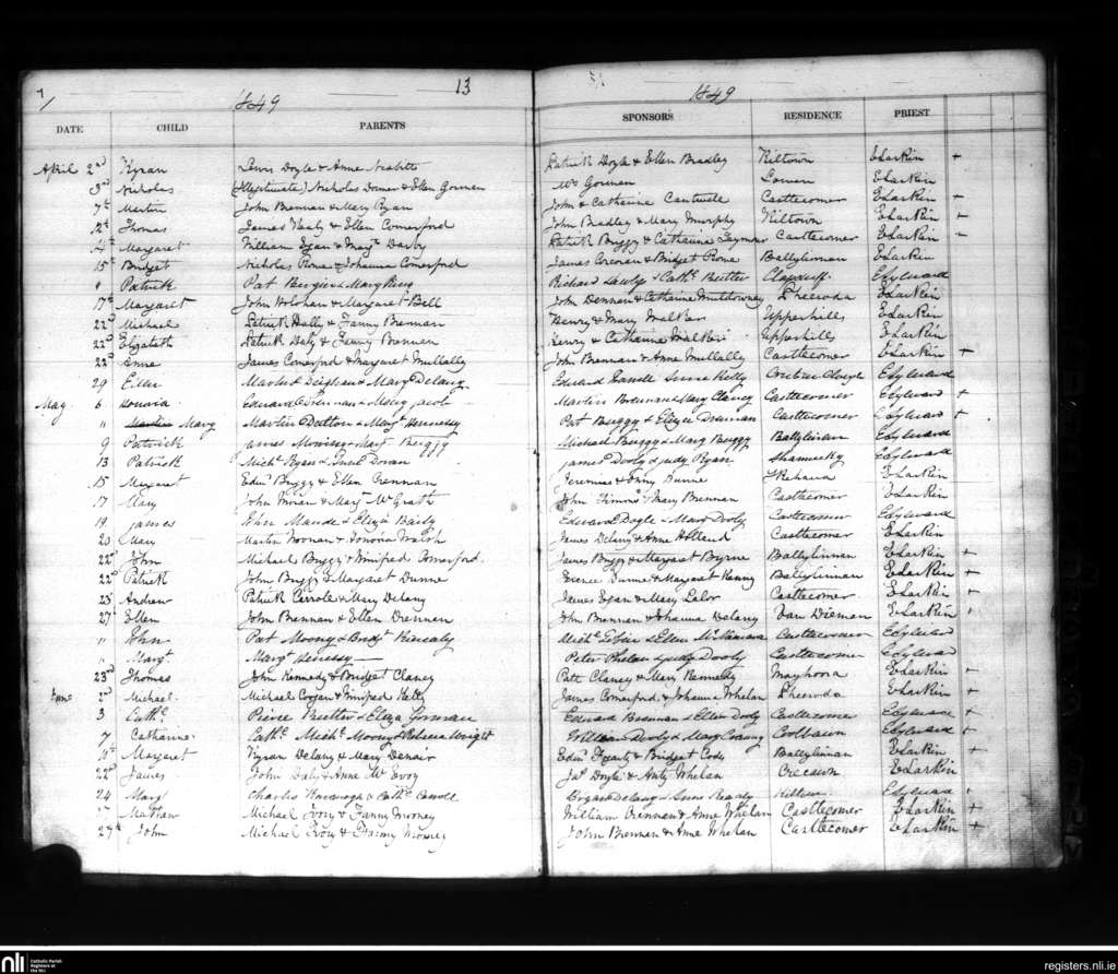 Castlecomer; County of Kilkenny; Diocese of Ossory. Baptisms, Apr. 1849 to June 1849
