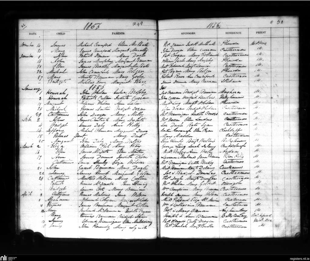 Castlecomer; County of Kilkenny; Diocese of Ossory. Baptisms, Nov. 1855 to Apr. 1856