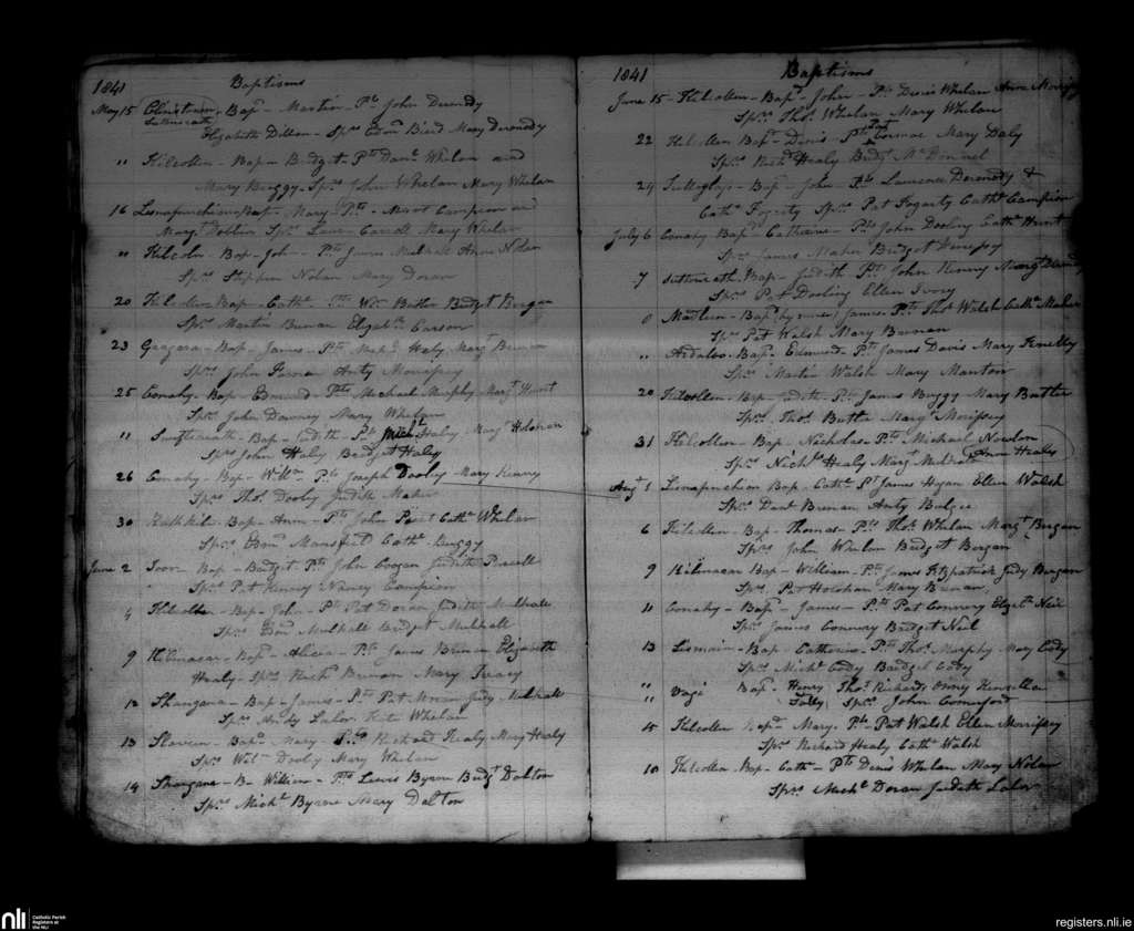 Conahy; County of Kilkenny; Diocese of Ossory. Baptisms, May 1841 to Aug. 1841