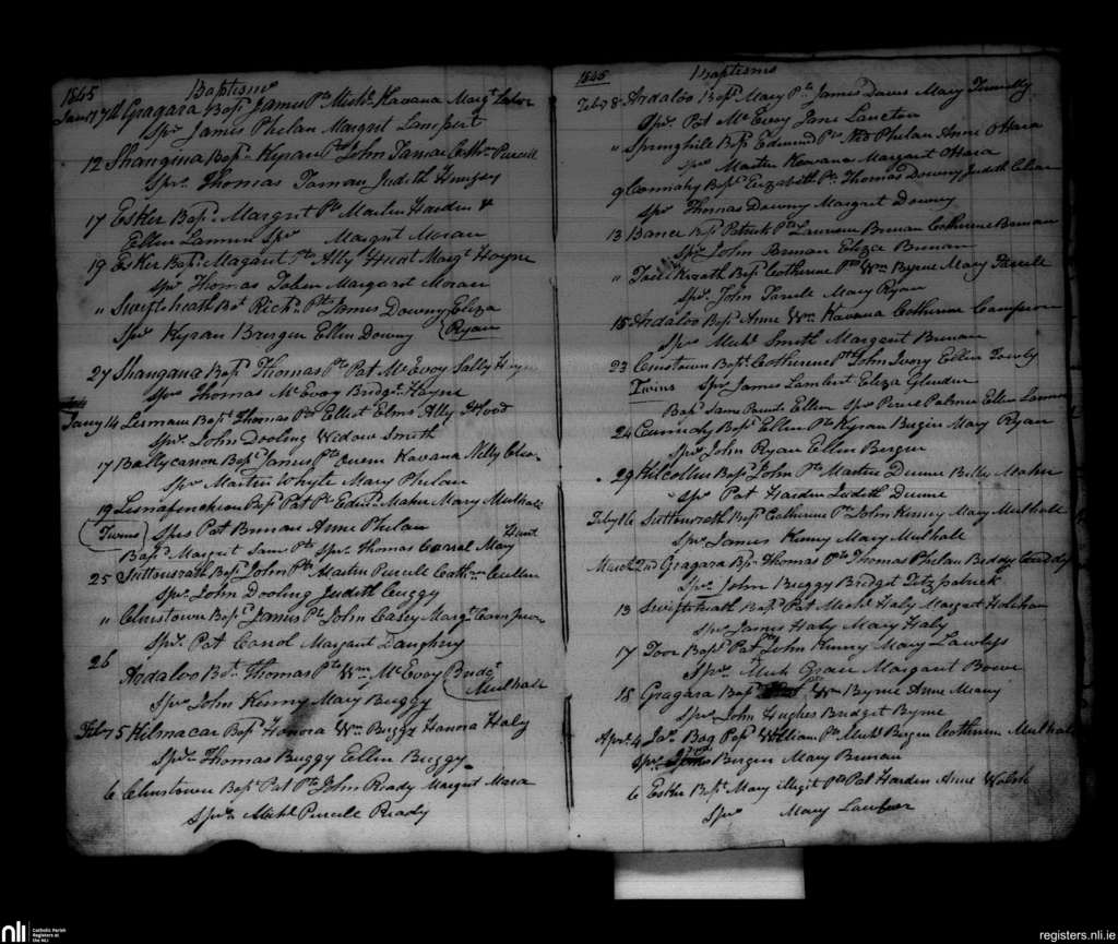 Conahy; County of Kilkenny; Diocese of Ossory. Baptisms, Jan. 1845 to Apr. 1845