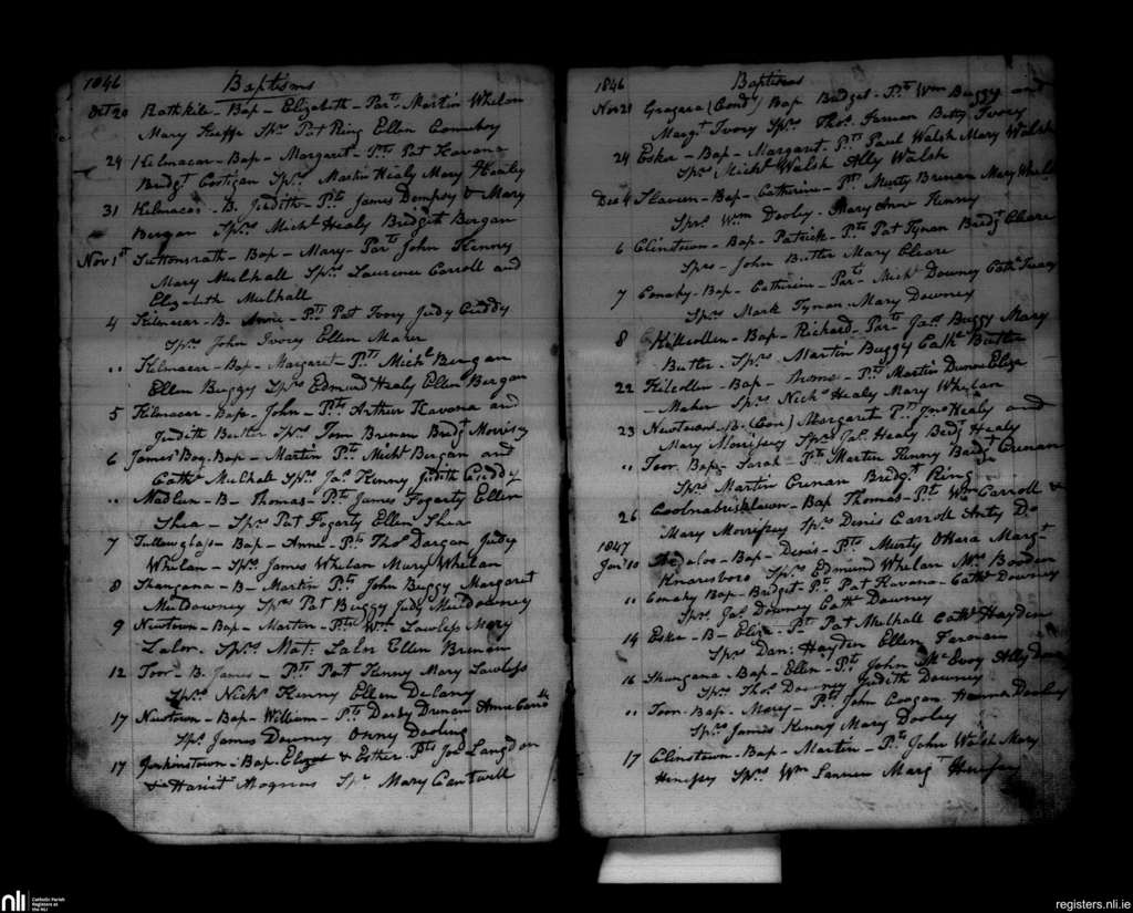 Conahy; County of Kilkenny; Diocese of Ossory. Baptisms, Oct. 1846 to Jan. 1847