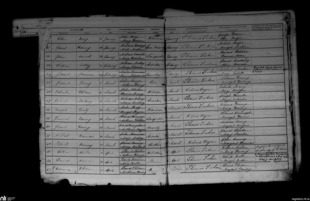 Conahy; County of Kilkenny; Diocese of Ossory. Baptisms, Jan. 1878 to Apr. 1878