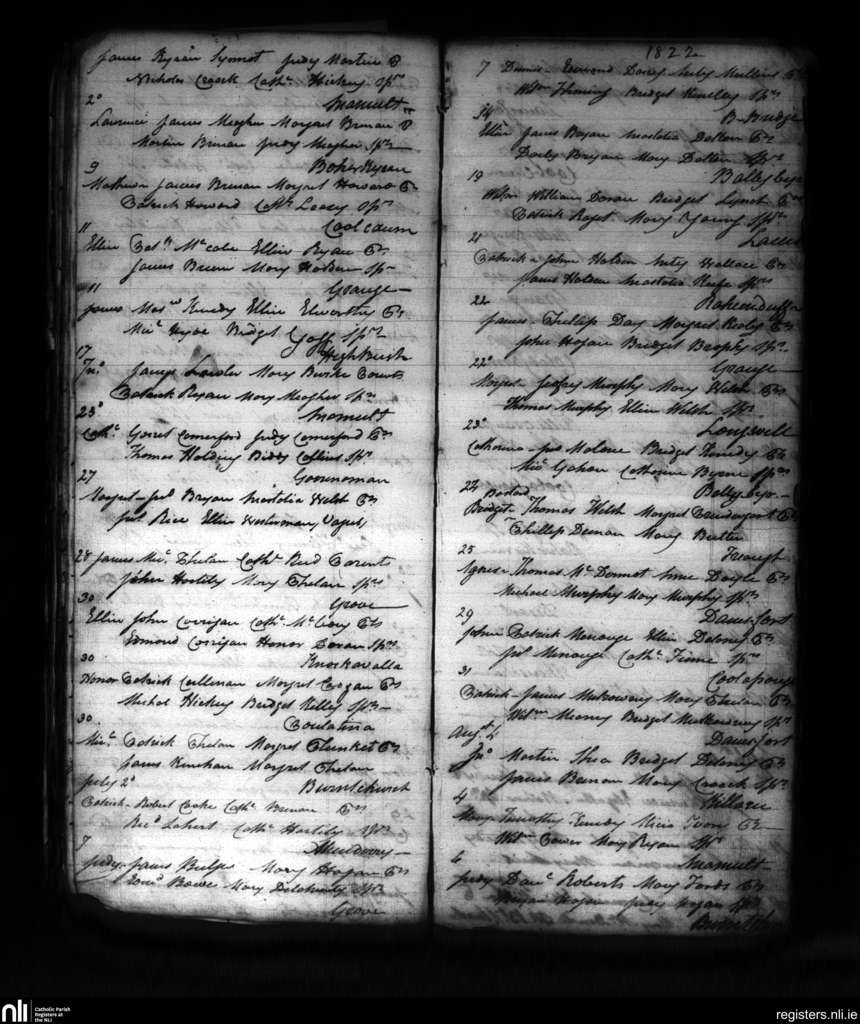 Danesfort; County of Kilkenny; Diocese of Ossory. Baptisms, June 1822 to Aug. 1822