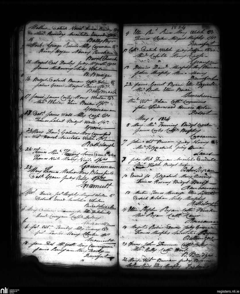 Danesfort; County of Kilkenny; Diocese of Ossory. Baptisms, Mar. 1824 to May 1824