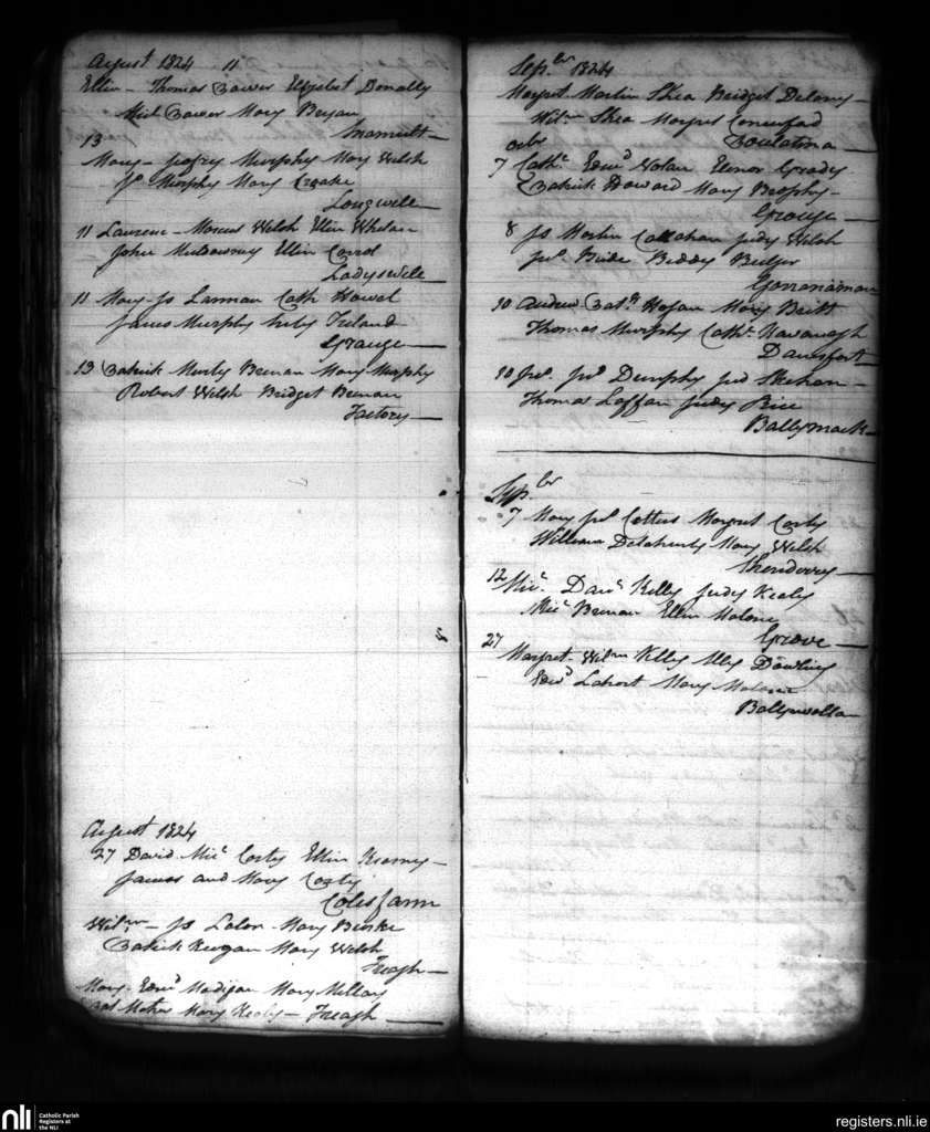 Danesfort; County of Kilkenny; Diocese of Ossory. Baptisms, Aug. 1824 to Oct. 1824