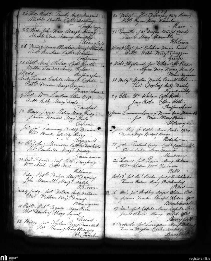 Danesfort; County of Kilkenny; Diocese of Ossory. Baptisms, Apr. 1825 to July 1825