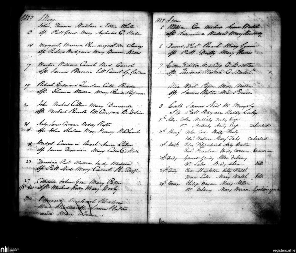 Dunamaggan; County of Kilkenny; Diocese of Ossory. Baptisms, May 1827 to June 1827