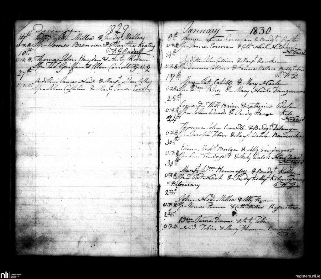 Dunamaggan; County of Kilkenny; Diocese of Ossory. Baptisms, Dec. 1829 to Feb. 1830