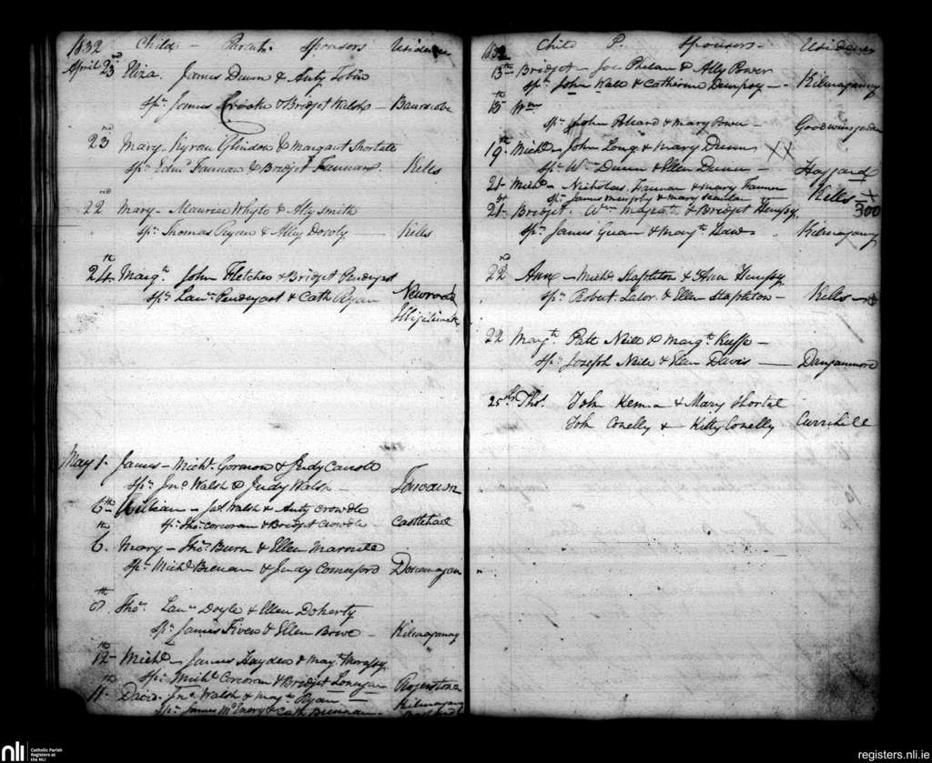 Dunamaggan; County of Kilkenny; Diocese of Ossory. Baptisms, Apr. 1832 to May 1832