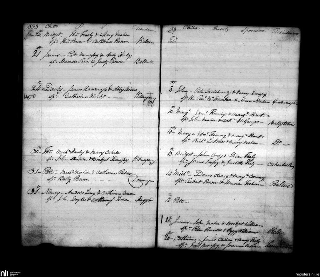 Dunamaggan; County of Kilkenny; Diocese of Ossory. Baptisms, Jan. 1833 to Feb. 1833