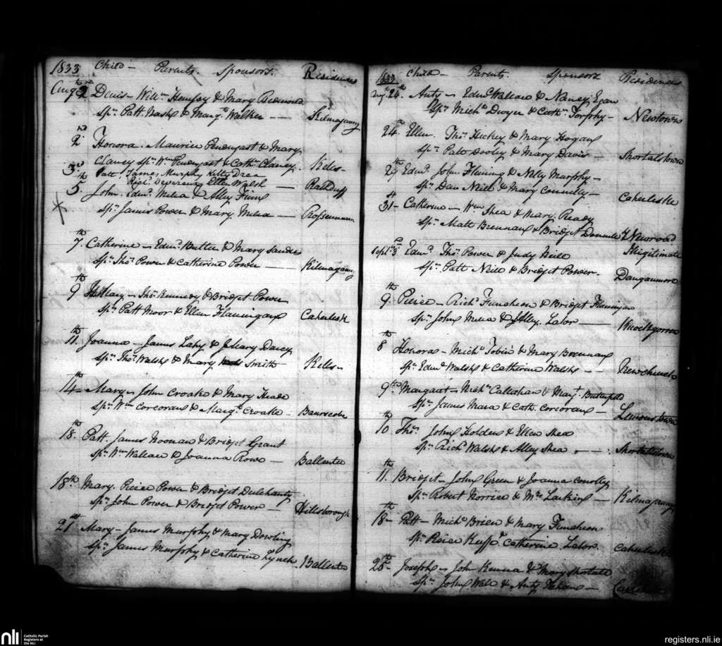 Dunamaggan; County of Kilkenny; Diocese of Ossory. Baptisms, Aug. 1833 to Sep. 1833