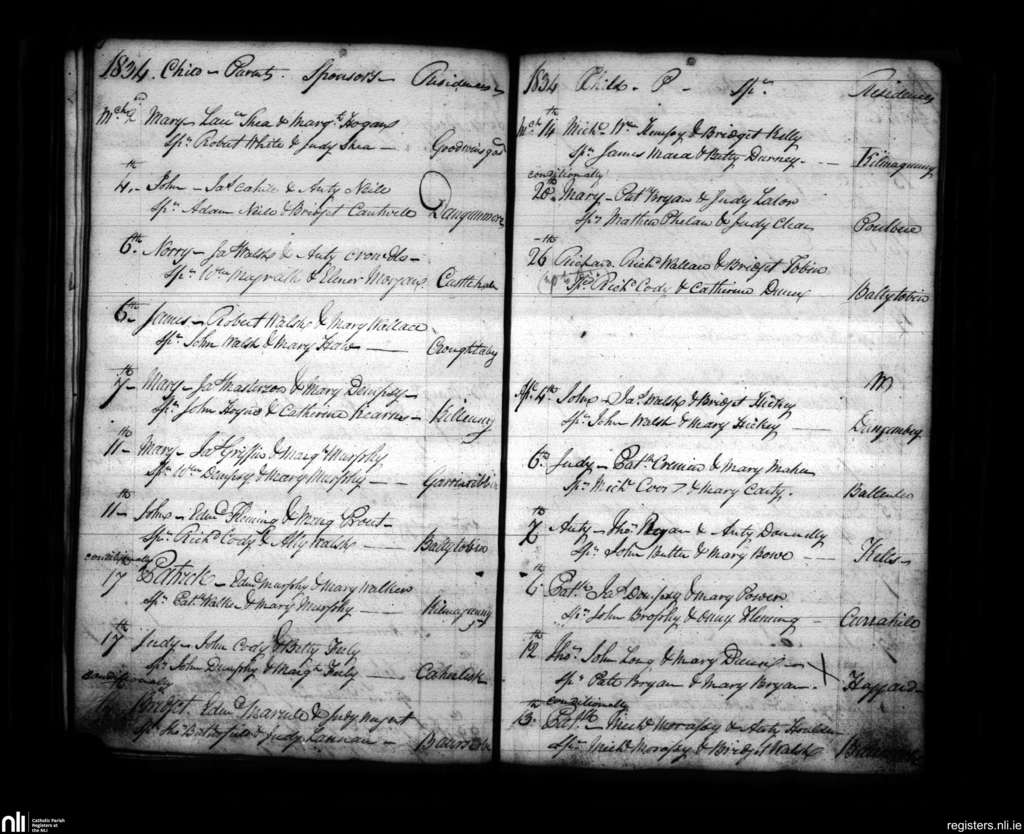 Dunamaggan; County of Kilkenny; Diocese of Ossory. Baptisms, Mar. 1834 to Apr. 1834