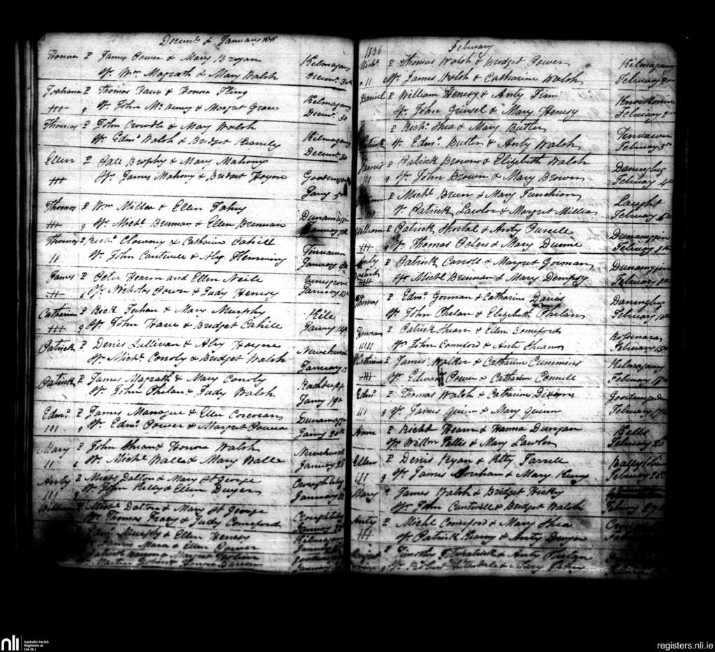Dunamaggan; County of Kilkenny; Diocese of Ossory. Baptisms, Dec. 1835 to Feb. 1836
