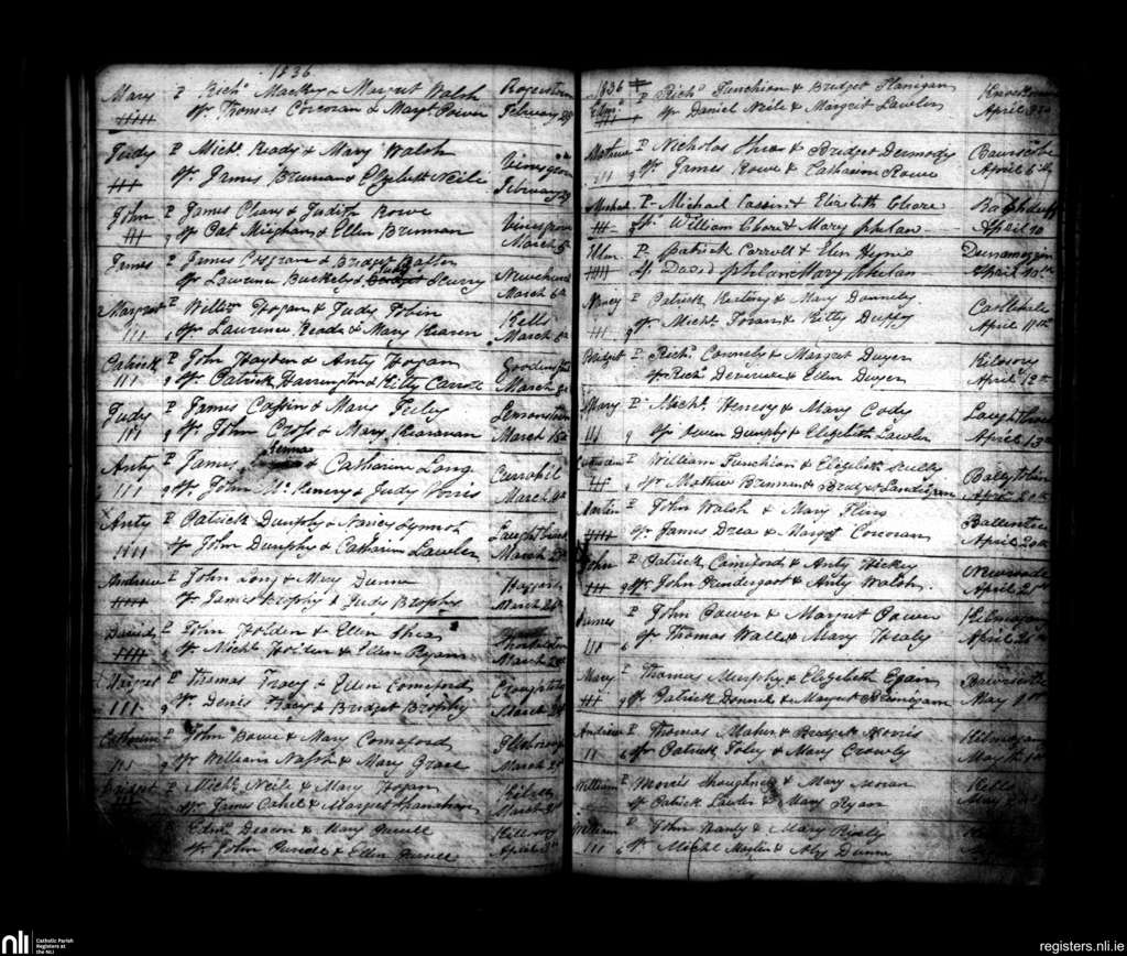 Dunamaggan; County of Kilkenny; Diocese of Ossory. Baptisms, Feb. 1836 to May 1836