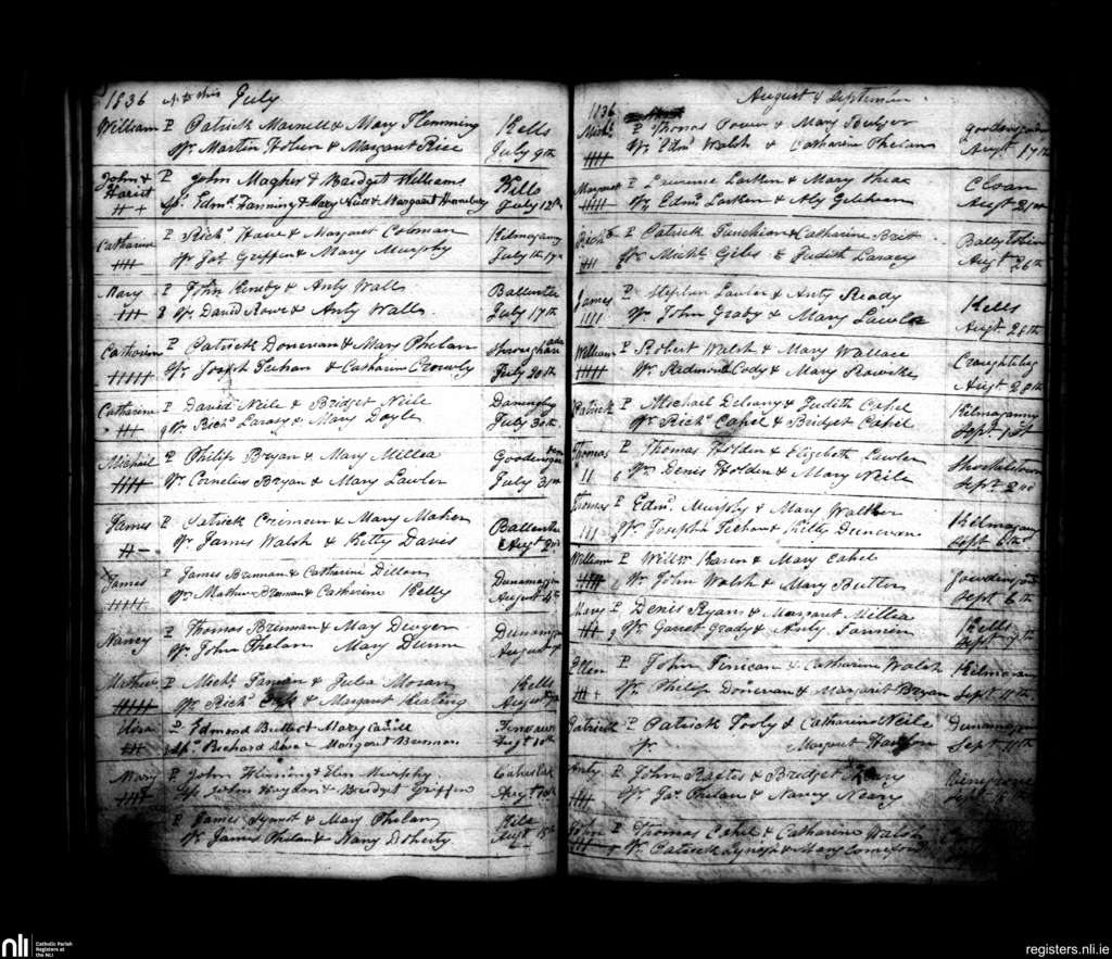 Dunamaggan; County of Kilkenny; Diocese of Ossory. Baptisms, July 1836 to Sep. 1836
